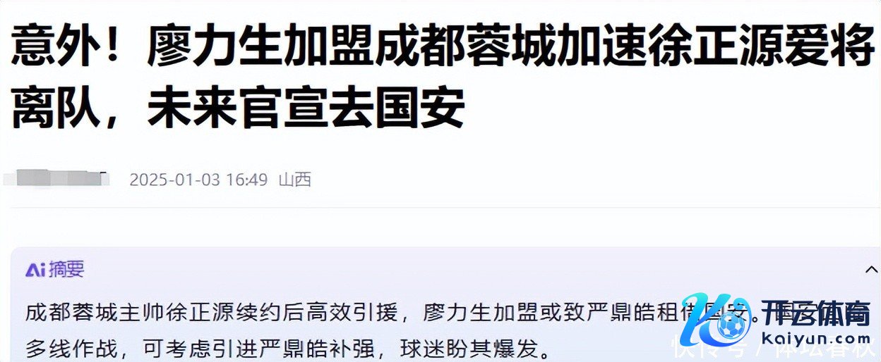 而跟着廖力生和李可的加盟,成齐蓉城的后腰位置上如故东说念主满为患,上赛季刚刚加盟球队的严鼎皓,在队中的位置变得越来越苦处,据一些国内媒体线路,严鼎皓很有可能会在本年冬天离开成齐蓉城。