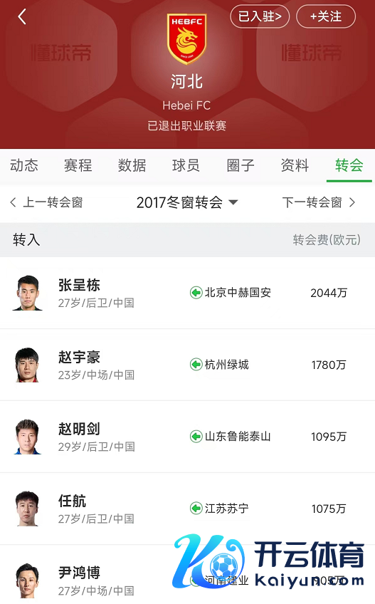 河北中原幸福在阿谁赛季,还花了2044万欧元买张呈栋,1780万欧买赵宇豪,1075万欧元买任航,905万欧买尹鸿博,加上2100万欧的赵明剑,这5名国脚告成花了7900万欧元转会费。